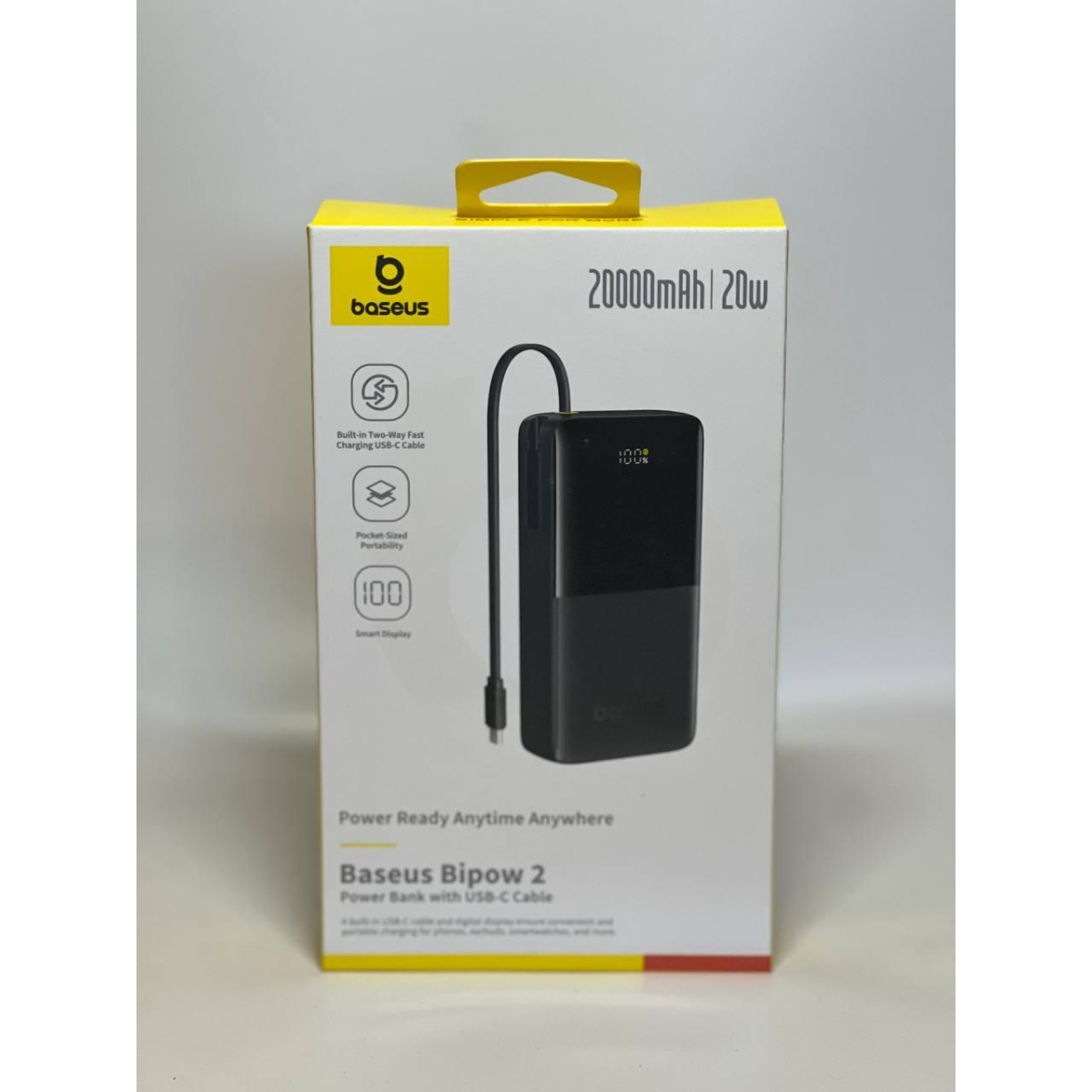 Портативний зарядний пристрій із вбудованим кабелем Tape C Baseus Bipow 2 Digital Display 20W 20000mAh with.